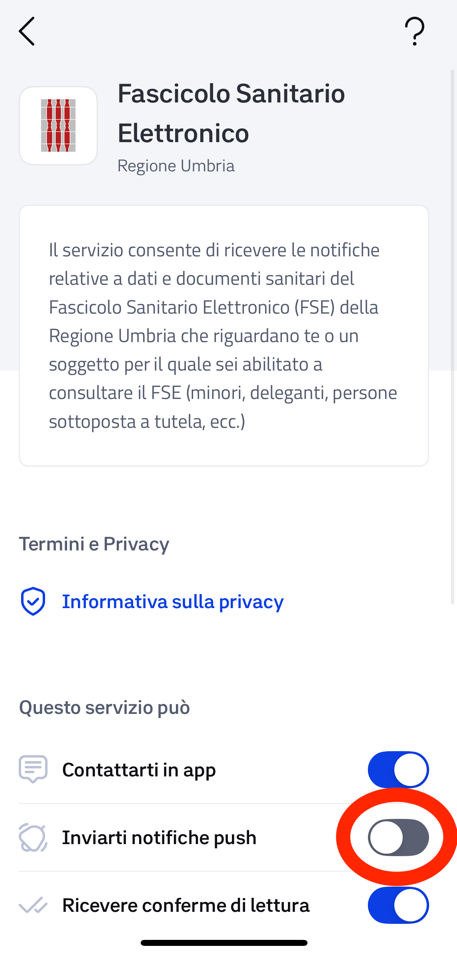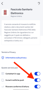 Si precisa che, disattivando le notifiche, il fascicolo sanitario continua ad essere alimentato normalmente.